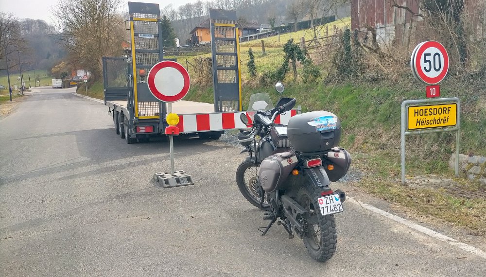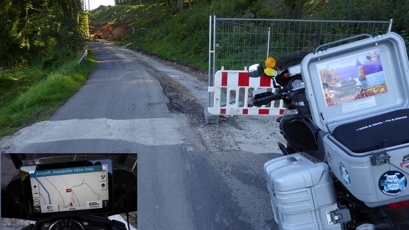 Ich war während der Mittagspause der Bauarbeiter da und konnte von Hoesdorf zum PK-Punkt hochfahren. Wie lange die Bauzeit dauert, konnte ich nicht herausfinden.