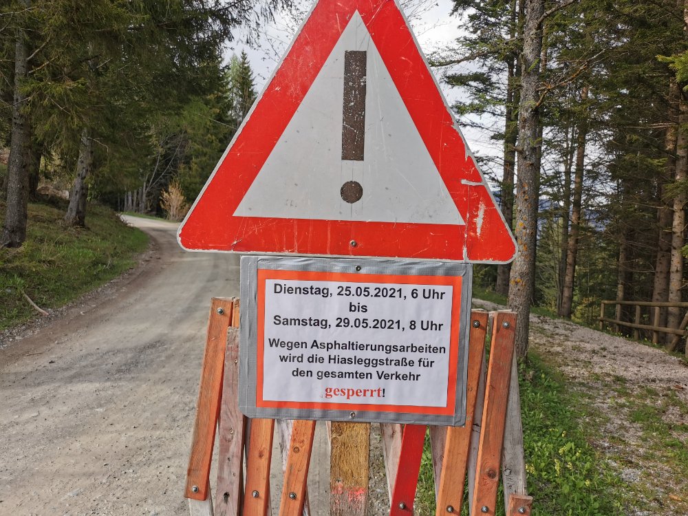 Die Straße zum Hiaslegg wird in der Zeit vom 25. bis 9.05.2021 asphaltiert und ist gesperrt. Das Gasthaus öffnet ab 29.05.2021