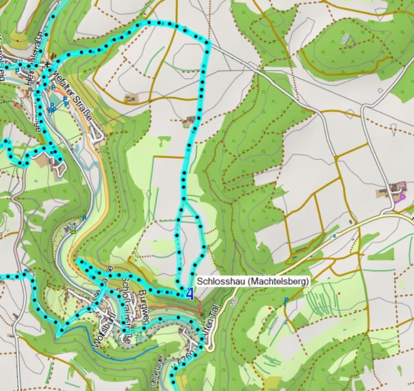 Den Gastank sieht man leider auf dem Sat-Bild nicht wirklichl. :( Dafür gut die Situation: Hört der Ort auf geht es nach rechts hoch zum Wanderparkplatz.