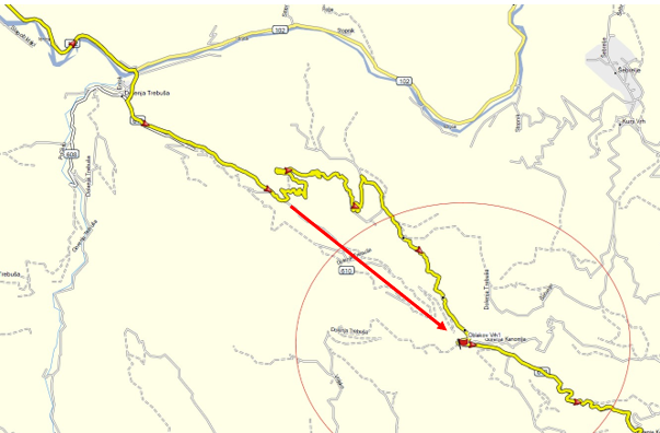 aus Dolenja Trebuša raus immer auf der 610 bleiben, ab N46.08124 E13.85759 bis zur Passhöhe 6km auf gut zu befahrender Naturstraße (Stand 2017), auf deiner Karte ist das die gestrichelt eingezeichnete Straße unterhalb des Pfeiles