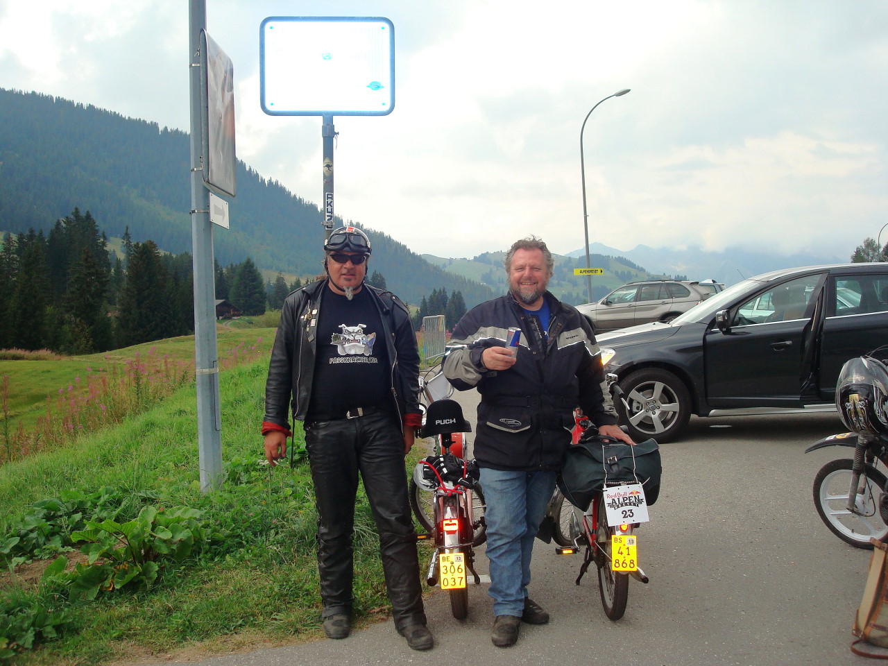 Rolf und Ich könnten etwas Unterstützung gebrauchen auf der Strecke oder beim Start/Ziel macht sicher Spass uns zuzusehen wie wir mit den Sackgeldverdunstern über die Pässe tuckern.