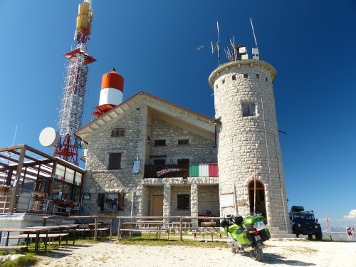 Mit der RT auf den Col Visentin zu fahren war ein versehen. Habe erst oben gemerkt, dass die Abfahrt zum benachbarten Pass nicht eine breite Teerstrasse ist, sondern ein schmaler Trampfelpfad für Bergsteigerschuhe