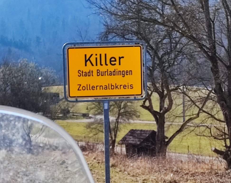 was meint ihr wie oft die Ortsschilder von Killer schon gestohlen wurden, je mehr die Gemeinde tut um sie zu schützen um so ausgefeilter die Methoden um sie abzumontieren. Die Gemeinde hat sogar schon erwogen, Replicas des Ortschildes herzustellen lassen und für Souvenierjäger zum Verkauf anzubieten. Der Name hat übrigens nichts damit zu tun, dass die Einwohner besonders gewalttätig waren, sondern entwickelte sich mit Beginn der Christianisierung nachdem um eine Kirche herum die Wohnbebauung entstand aus dem alemannischen Begriff "Kilchwilari" für Kirchweiler in mehreren Stufen von Kilwilar und Killar zum jetztigen Killer. Deshalb heißt das ganze Tal von Burladingen bis Hechingen eben auch Killertal und nicht, was richtig wäre entsprechend dem Flußnamen Starzeltal.