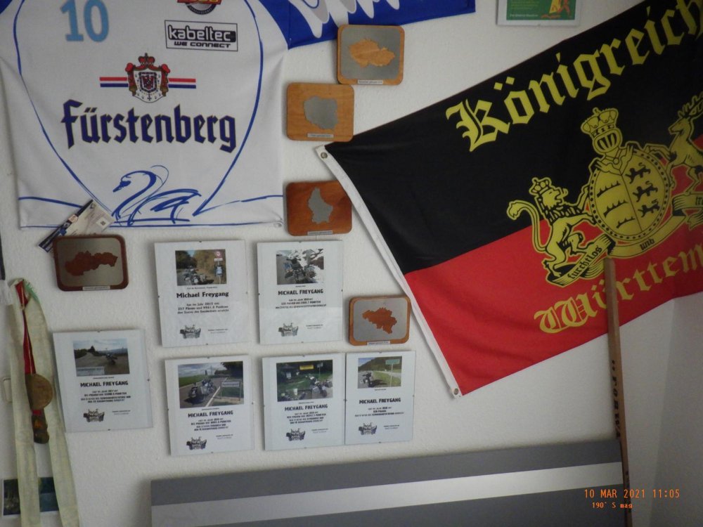 Hier meine Wand mit Wild Wings-Trikot und meiner Württemberg-Fahne im badischen Exil.
