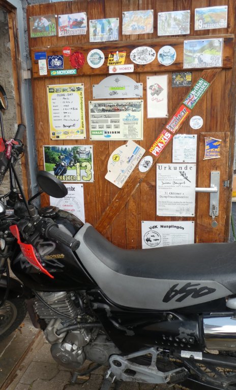 Holla, da kann ich nicht ganz mithalten. Unsere Passknacker-Urkunden sind mit denen von anderen Such- und Zielfahrten, Motorrad- und Oldtimertreffen schön in Klarsichtfolie in einem Ordner abgeheftet. Aber immerhin die Passknacker-Nachweisschilder haben einen Ehrenplatz an einer der Garagentüren gefunden. . Immerhin.... und sollte es doch mal zu einem Länderpreis langen, dann wüßte ich da schon einen Platz, der sicherlich auch bei Gaby Zustimmung findet.